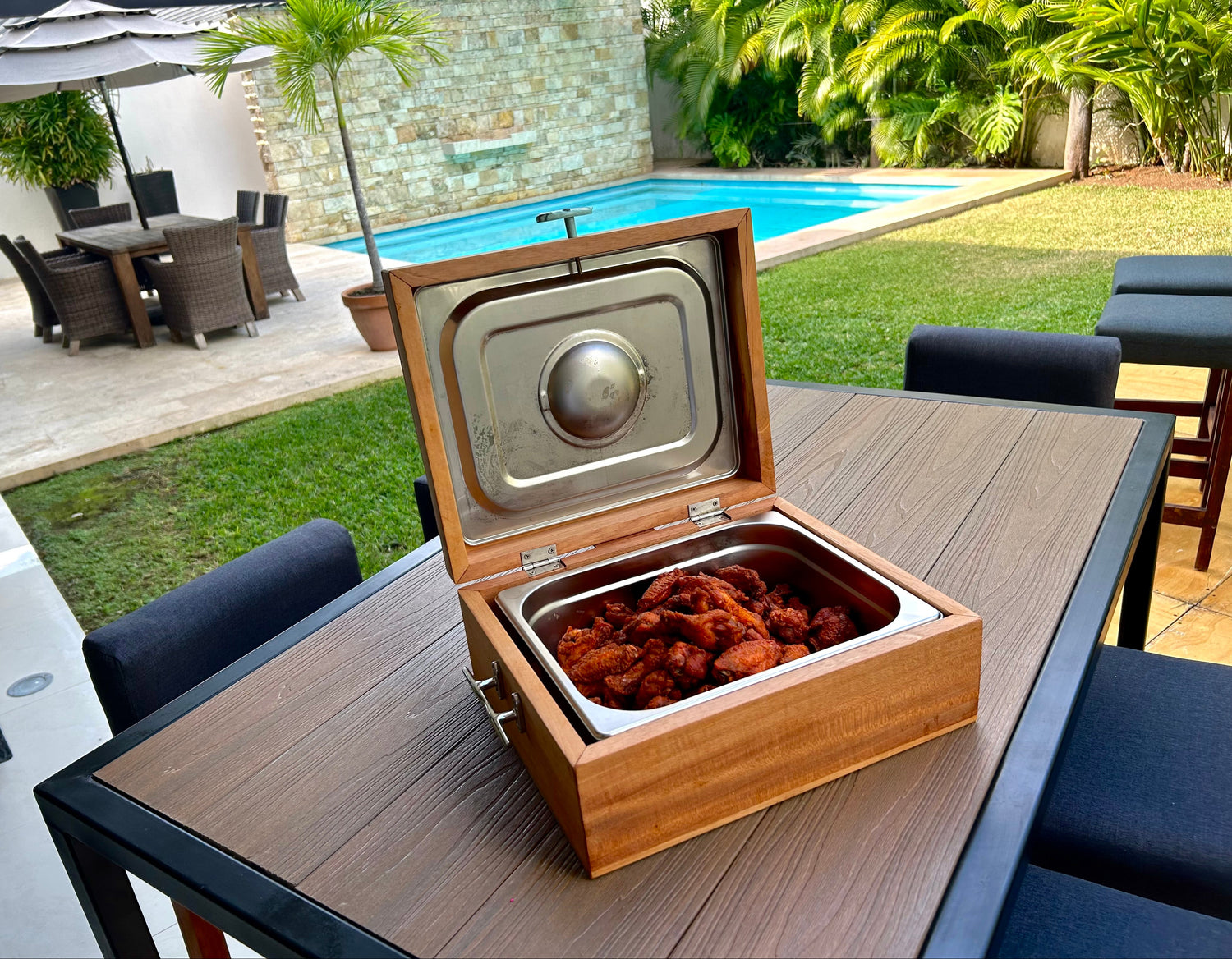 Nos especializamos en la fabricación de elegantes cajas de madera con inserto térmico de grado alimenticio, diseñadas para mantener la comida caliente al salir del asador. Nuestros productos combinan funcionalidad y estilo, convirtiéndose en el accesorio ideal para los amantes de la parrilla. Con diseños únicos y detalles sofisticados, cada caja refleja nuestra pasión por la calidad y el buen gusto
